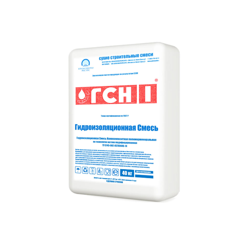 Гидроизоляционная сухая смесь ГСН-1 — это современный состав на цементной основе с химически активными добавками, предназначенный для создания высокоэффективного водонепроницаемого барьера. Обладает проникающим (капиллярным) действием, кристаллизуясь в порах бетона или кирпича, что обеспечивает долговечную и глубокую гидроизоляцию.